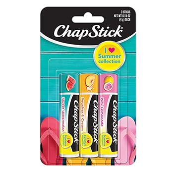Chapstick I Love Summer Collection Season Flavored Lip Balm Tube 0 15 Ounce Each Sweet Watermelon Peaches Cream Pink Lemonade Flavors 1 Blister
