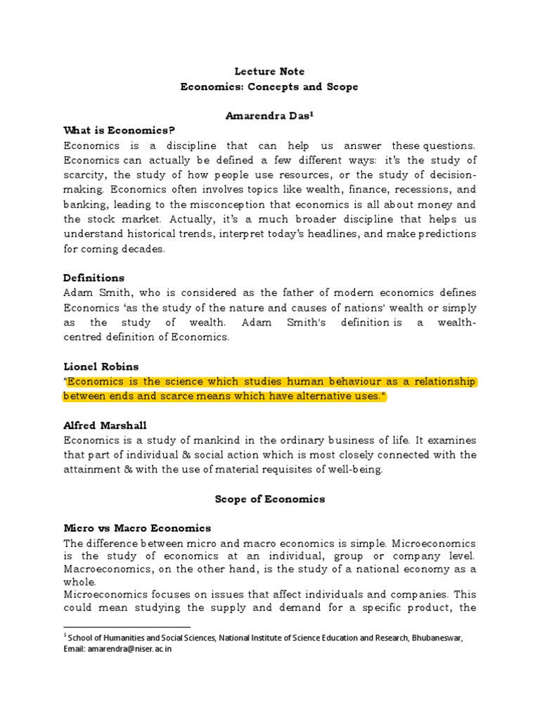 Notes On Scope Of Economics Grade 11 Economics Nature Of
